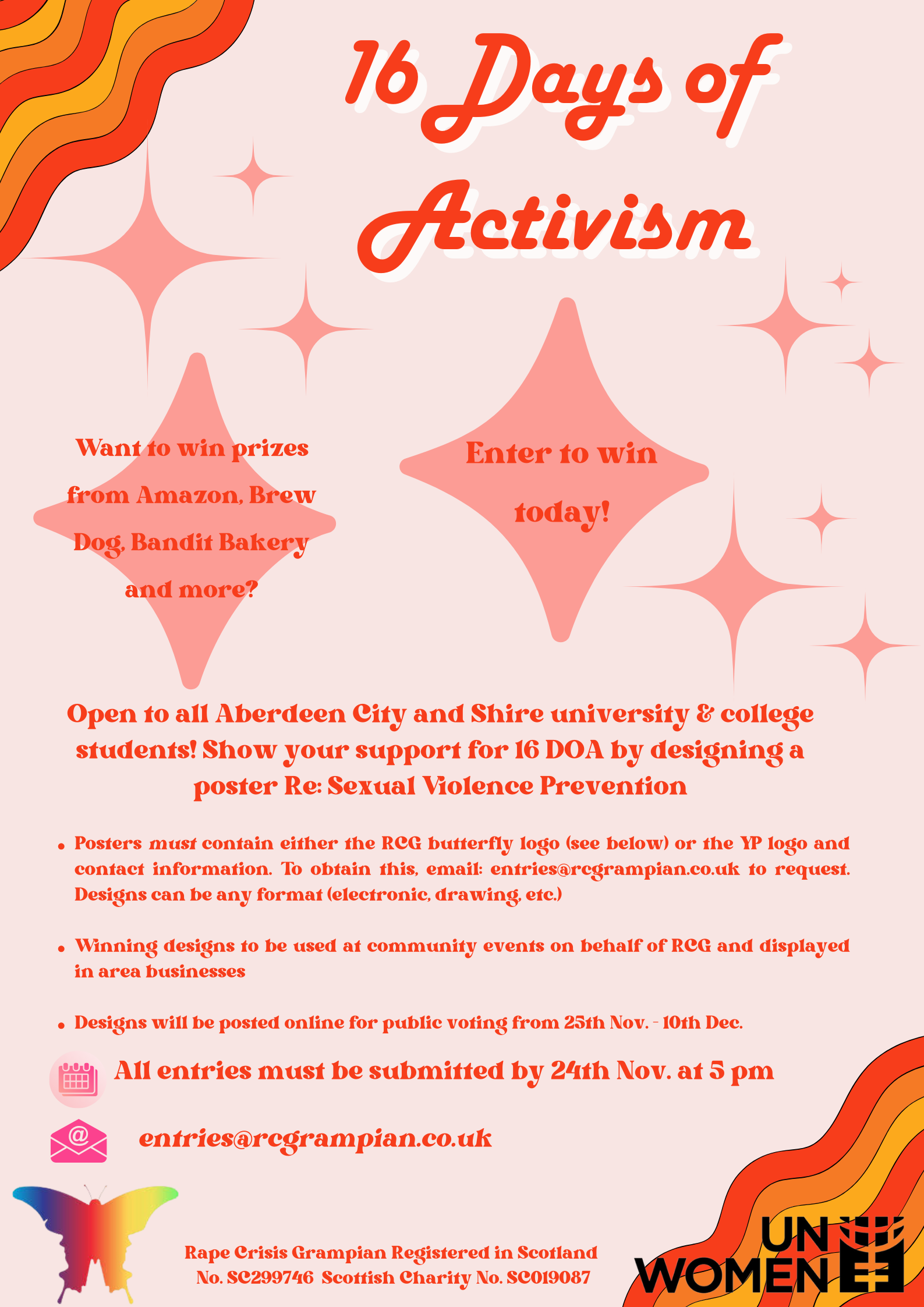 Join our 16 Days of Activism, alongside Rape Crisis Grampian. See the attached flyer for details. Uni 16 DOA 2023 (5).png533.1 KB