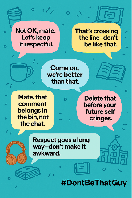 - Ever heard a mate make a “joke” that crosses the line? Call it out.